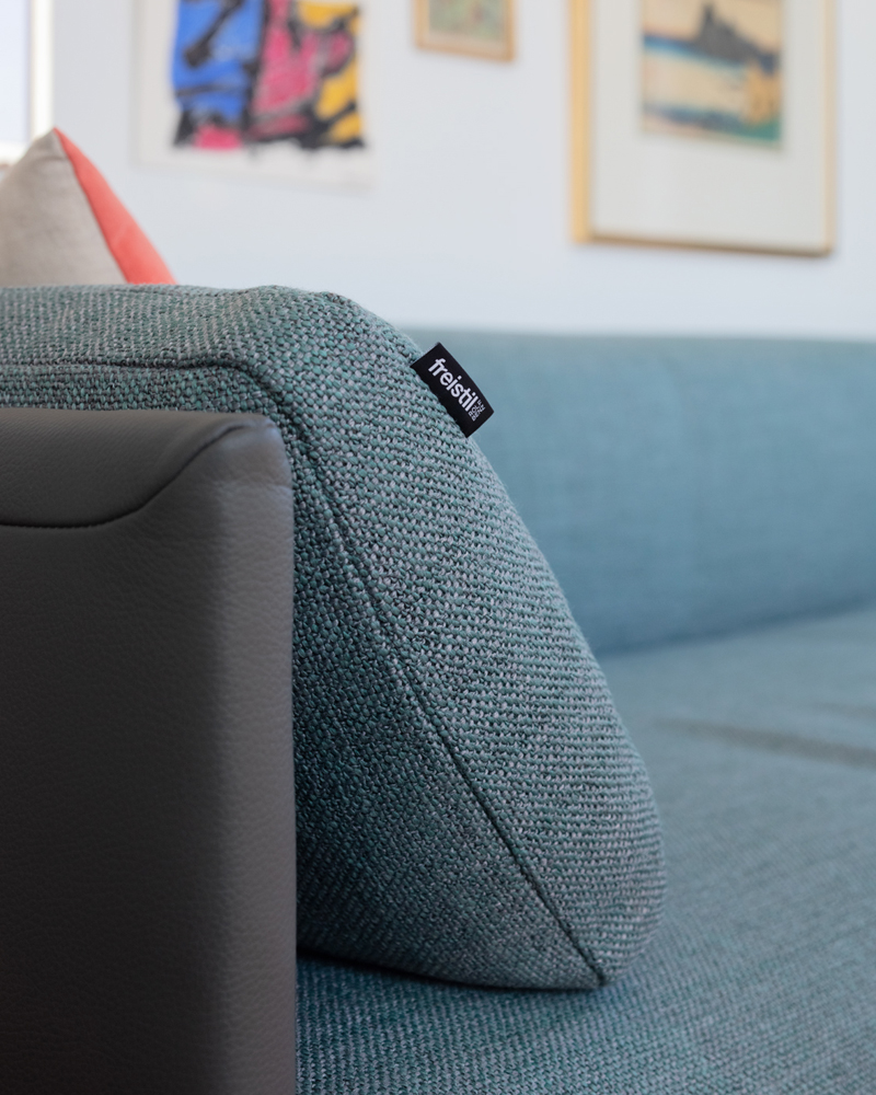 freistil 131 has been designed for people who are seeking their inner self at home. Its shape radiates peace and its decorative geometric seams in the middle of the back sets the sofa on the path towards centred calmness.