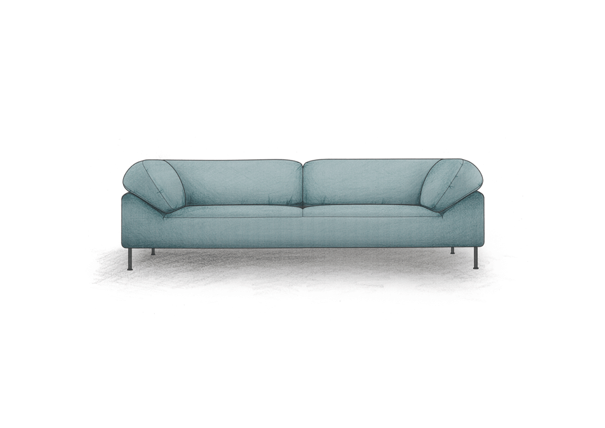 It masters the combination of tight and soft lines giving it a stringent yet soft appearance. The seat is low and wide, designed to ensure utmost and pleasant comfort. Combined with low backrest, the continuous back cushion functions like a collar embracing you when seated. Delta shaped sides perfectly support the cushion in a wide angle.