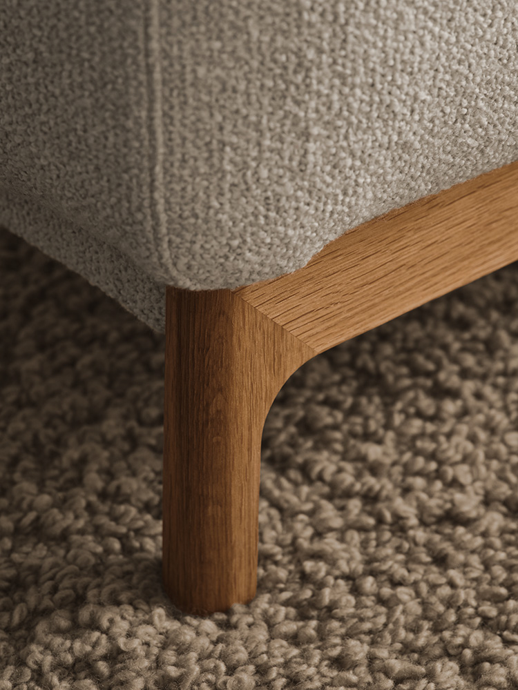 In designing the Chleo sofa, our goal at Studio Meike Harde was to create a piece that blends timeless aesthetics with practical functionality. The solid oak frame is thoughtfully constructed to have a distinct presence from every angle. Clean lines meet soft curves to express a calm and refined visual language.